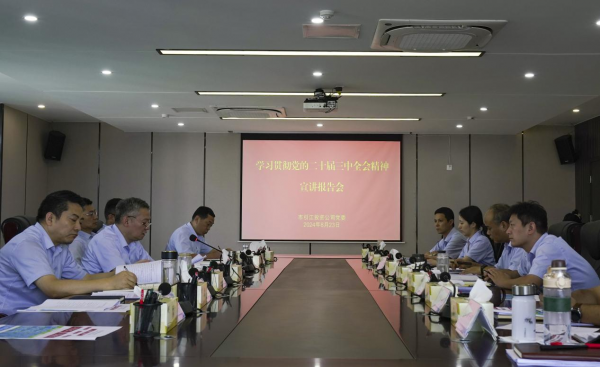 8月23日,市引江投資公司學(xué)習(xí)貫徹黨的二十屆三中全會(huì)精神宣講報(bào)告會(huì)召開,公司黨委書記、董事長(zhǎng)郭星作宣講報(bào)告,公司第一黨支部、第二黨支部全體黨員職工參加。